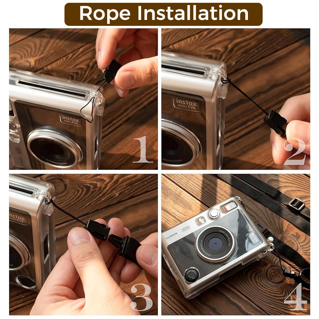 Crystal Clear Protective Case for Fujifilm Instax Mini Evo – Sleek Transparent PC Shell with Attachable Loop