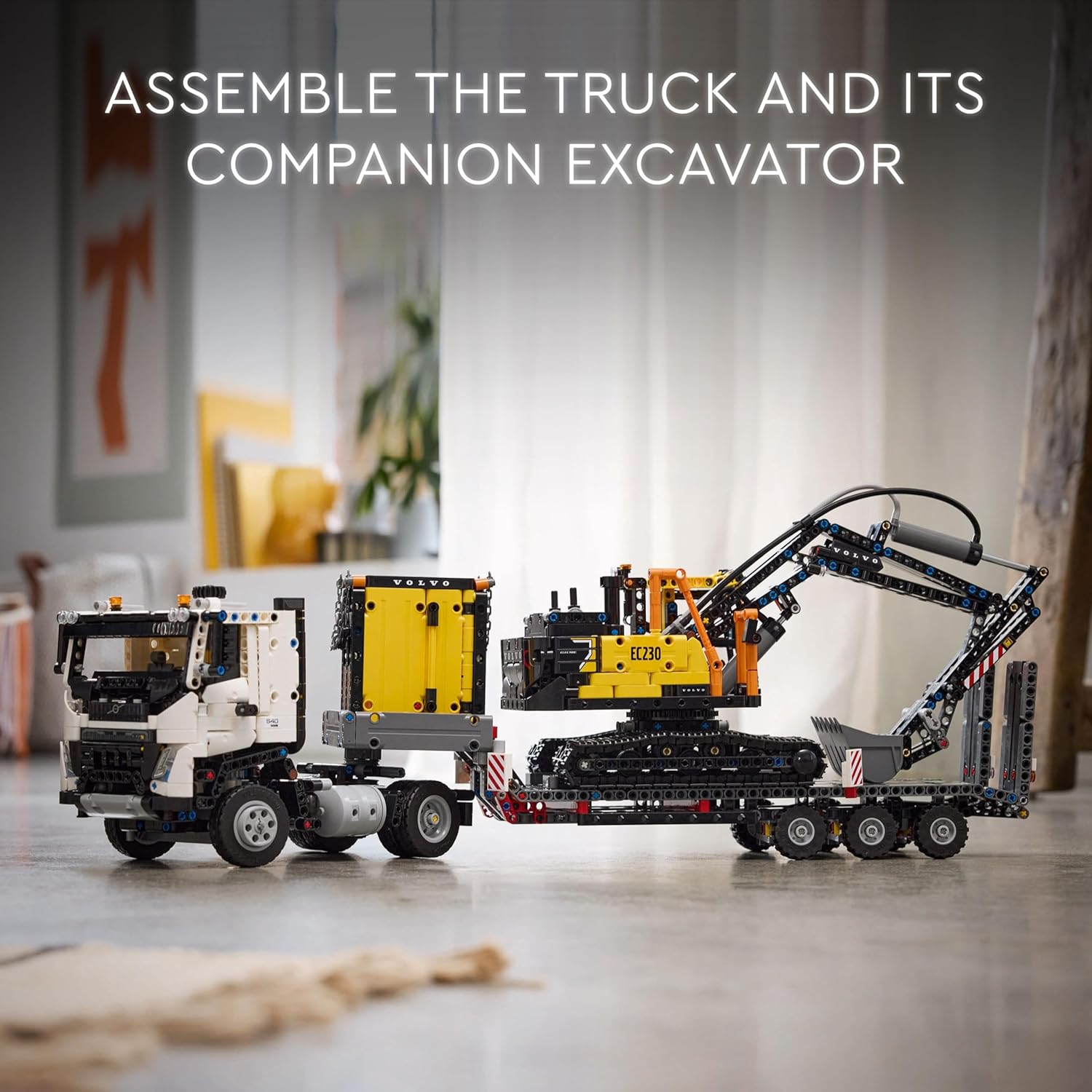 - Volvo truck toy with buildable excavator – Inspire kids to build their own heavy-duty construction vehicle with flatbed trailer, toy excavator and charging station